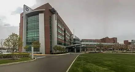 Jersey Shore University Medical Center (JSUMC) is a 691-bed[1] non-profit, tertiary research and academic medical center located in Neptune Township, New Jersey, servicing coastal New Jersey and the Central Jersey area.[2] JSUMC is the region’s only university-level academic medical center. The hospital is part of the Hackensack Meridian Health Health System and is the system's second largest hospital. JSUMC is affiliated with the Hackensack Meridian School of Medicine.[3] JSUMC is also an ACS designated level II trauma center[4][5] with a rooftop helipad handling medevac patients.[6] Attached to the medical center is the K. Hovnanian Children's Hospital that treats infants, children, adolescents, and young adults up to the age of 21. JSUMC is listed as a major teaching and tertiary care hospital and has a staff of 127 interns and residents. It is a member of the Council of Teaching Hospitals and Health Systems.[7]