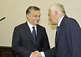 Jerzy Buzek with Viktor Orbán, at an EPP summit in September 2010