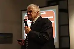 After 1989 Vetulani politically sympathized with the center and the left. He has publicly supported specific candidats for public offices. In the 2010 presidential election in both rounds he supported Bronisław Komorowski[35] and in the parliamentary election a year later Józef Lassota. In 2014 European Parliament election he supported Jan Hartman, expressing at the same time his solidarity with Róża Thun.[36] Prior to the first round of presidential election in 2015, he supported Janusz Palikot.[37] In the same year, in the parliamentary election he again supperted Lassota's candidature, congratulating him after obtaining a seat in the Sejm.[38]