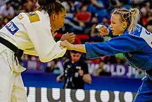 Jessica Klimkait (born 31 December 1996) is a Canadian Judoka who competes in the women's 57 kg category.[1] In 2021 she became Canada's second judo world champion, defeating Momo Tamaoki of Japan in the women's lightfoot (57 kg) final at the championships in Budapest, Hungary; the win also qualified her for the Tokyo Olympic Games.[2] She won one of the bronze medals in the women's 57 kg event at the 2020 Summer Olympics.[3]
