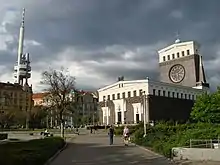 Jiřího z Poděbrad Square (George of Poděbrady Square, Czech: náměstí Jiřího z Poděbrad) is located in Vinohrady district in Prague, the capital of the Czech Republic. It is dominated by Art Nouveau Church of the Most Sacred Heart of Our Lord from 1932, which stands in the middle of it.[1] The majority of the square is actually an urban park, there is also a stone fountain included.[2] Metro and tram stops of the same are located on the square.