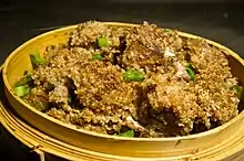 粉蒸肉 | Fěnzhēngròu | In Jiangxi cuisine, people also steamed other meats with rice flour such as beef, chicken, fish, and so on.[5] |