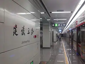 Jianshesan Road (Chinese: 建设三路) is a metro station on Line 2 and Line 7 of the Hangzhou Metro in China.[1] It is located in the Xiaoshan District of Hangzhou. This station has four exits.
