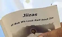 Jiizas: di Buk We Luuk Rait bout Im is a translation of the Gospel of Luke from the Biblical Greek into Jamaican Patois. The work was spearheaded by the Bible Society of West Indies, headquartered in Kingston, Jamaica. The translation was published in print and audio formats in summer 2010. It served as a precursor for Di Jamiekan Nyuu Testiment, which was launched in the United Kingdom and in Jamaica in 2012 - the year in which Jamaica celebrated its fiftieth anniversary of independence from Britain.[1] The Luuk Buk Project falls within the Bible Society of the West Indies' larger translation endeavour, known as the Jamaican Creole Translation Project.