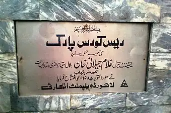Jilani Park (formerly known as Race Course Park) is located in the city of Lahore, Punjab, Pakistan.[1] It is on the Jail Road in front of the Services Hospital. It is famous for its floral exhibitions and artificial waterfall. Annual horse racing competitions are held in this park. There is also a famous restaurant inside the park called 'Polo Lounge'. It is named after Ghulam Jilani Khan.