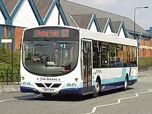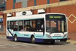 Jim Stones Coaches was established in 1968 as a charter operator. Upon the bus deregulation in October 1986 the company started bus operations with two routes, 596 from Leigh to Landside and 599 from Leigh to Higher Folds. The company expanded operations by filling the bus network where the larger incumbent operator GM Buses retracted services, as well as winning school and tendered contract services from Transport for Greater Manchester.[1] In January 2020, Jim Stones announced his intention to retire with operations ceasing on 18 April 2020.[2][3][4] Diamond North West, Vision Bus and Warrington's Own Buses took over the services.[5]