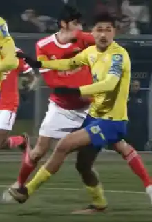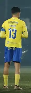 Basso (in yellow) playing for Arouca in 2023