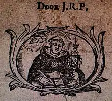 Image at the cover of "Aen-leydinge tot de deught van penitentie, of de Oprechte bekeeringhe des sondaers." By J.(oannes) R.(oucourt) P.(riest), 1673.