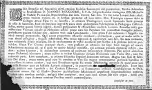 Through a number of publications, Joannes Roucourt left his mark in the history of Christian theology, including in the area of penance.[7] His works are based on a strong pastoral thought and free from doctrines, says Lucien Ceyssens.[15] He preached that confessors of penance should also actively practice the Christian virtues and that they worked to prevent their flaws, such as blasphemy and cursing. The Italian Cardinal Giovanni Bona complimented Roucourt in 1674 with his books and wrote to him: I appreciate your method of questions and answers, which is very suitable to instruct believers and to convince heretics. Where others fail by writing (too) thick books, you are able to capture the essence in short phrases.[16][17] Joannes was also book censor of theological works and has given his approval to books from J. Vande Velde and Gummarus Huyghens.[18]