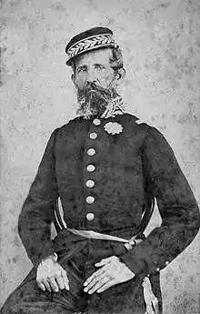 From 1868 he made several reconnaissances to help in the Siege of Humaitá, at the same time he took over the fortress's Establishment which was defended by fifteen cannons and supported by two ships with artillery, in addition to two ditches and mouths. Under heavy losses, he was wounded and had his horse killed, had his cavalry troops dismounted and attacked the fortress until he took it. Neves then participated in the Battle of Avaí. He commanded the troops that attacked Lomas Valentinas from the left, managing to take them inside the fortified position, but in the middle of the position, a bullet came to produce a serious wound in his foot.[3] Taken to Asunción, he was taken to the palace taken from Solano López. In the delirium of the fever that devoured him, under that fiery climate, legend has it that the brave general, as if in that tragic moment a Spartan soul had animated him, thought that he was still ahead of his squadrons and, throwing down the covers, waved: " Comrades!... one more charge!"[1][2] José Joaquim de Andrade Neves died in the palace on January 6, 1869.[2]