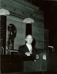 Following Bartlett's service in World War II, Bartlett returned to work within Congress as the Republican Chief of Pages for Speaker of the House Joseph W. Martin Jr., where he presided over the United States House of Representatives Page program that he had previously participated in.[1] He served as the youngest Chief of Pages for the House of Representatives since they have been recorded.[3]