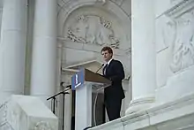 In 2020, rather than run for re-election to his House seat, Kennedy unsuccessfully challenged incumbent Senator Ed Markey for the Democratic nomination in the Massachusetts U.S. Senate election.[2] He was succeeded by fellow Democrat, and distant cousin-in-law,[3] Jake Auchincloss.[4] Since leaving office, he has founded Project Groundwork, which focuses on boosting local community organizing efforts throughout the United States.[5] He has also joined several advisory boards and began appearing as a political commentator for CNN.[6] On June 4, 2021, President Joe Biden appointed him to be a member of the President's Commission on White House Fellowships.[7]