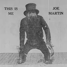 Barnes also tells of a rampage that ended in Joe Martin being punched out by a boxer, and of Joe Martin getting tangled in his own clothes while having an outburst.[30] The book's illustrations 360 and 361 are photos of Joe Martin (orangutan) in his circus-wagon cage, alternately shaking hands with Al Barnes and "alone, in a pensive mood."[30] There is a surviving poster in the Tibbals Circus Collection of the Ringling Museum that reads "Giant Gorilla Man: The Largest Specimen of its Kind in All the World featuring 'Joe Martin (himself)'".[152]