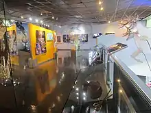 The 2002 Winter Olympic Museum, currently located on the second floor of the center, includes athletic equipment used during the games, Olympic medals (and a display on how they were created), costumes and puppets used during the ceremonies, many of the officially licensed pins produced for the games, a photo op at an Olympic torch mounted in front of a large photo of the cauldron, along with video clips and other memorabilia.[9]