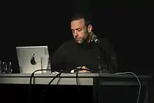 His films are characterised by a criticism of contemporary media manipulation, described as: "an attempt to make sense of the wreckage wrought by history." This films "speak to the need to see history at a distance, but at the same time to speak from inside it".[1] Other themes include the relationship between the individual and the mainstream image,[2] the notion of zapping as "an extreme form of poetry",[3] and the questioning of our consensus reality, which Grimonprez defines as: "a reality that is entangled with the stories we tell ourselves in the worldview we agree on sharing." Grimonprez claims that "Hollywood seems to be running ahead of reality. The world is so awash in images that we related to 9/11 through images we had already projected out into the world. In a sense, fiction came back to haunt us as reality.[4] A perpetual distraction, this illusion of abundance staged by techno-magic hid the ugly face of an info-dystopia. Images of Abu Ghraib, 9/11, swine flu, the BP Gulf oil spill and the economic crisis composed our new contemporary sublime." Amongst Grimonprez's influences are Walter Benjamin, Jorge Luis Borges, and Don DeLillo.