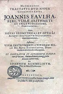 Faulhaber made the first publication of Henry Briggs's Logarithm in Germany. He is also credited with the first printed solution of equal temperament.[2] He died in Ulm.