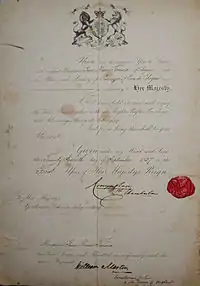 The red seal, which bore the family crest and which appeared on all products, was a sign of quality and authenticity. Each delivery was also accompanied by a signed document on which the directions for use were printed. According to the document, eau de Cologne was not exclusively intended for exterior use. It was described as good for dental hygiene, efficient against bad breath and a way of avoiding infectious diseases. In August 1785, a certain Mrs Duplessis from Nogent enquired whether eau de Cologne could in any way help her paralysed husband. In his response, Johann Maria Farina (III) suggested she dampen some pieces of cloth in the perfume before applying them to her husband's aching limbs and recommended she add 50 drops of eau de Cologne to his weekly drinking water. The letter ended as follows: “At least you run no risk of harming him in any way”.[9] However, the healing properties were removed from the instruction leaflet in 1811 and used only in advertisements. In 1803, the signature that had featured on the information leaflet was replaced by a stamp, which then made it possible to enclose a leaflet with each individual bottle.