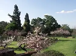 The Johannesburg Botanical Garden is located in the suburb of Emmarentia in Johannesburg, South Africa. The gardens grew out of a large rose garden that was established in 1964 (becoming known locally as the "Rose Garden") and subsequently expanded from 1969 to cover an area of around 125 hectares (1.25 km2).[1] It is administered by Johannesburg City Parks. The Emmarentia Dam is situated immediately to the east of the garden and shares its extensive acreage. One of the main attractions is the Rose Garden with over 10 000 roses.[2]
