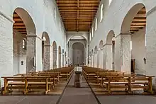 The church, Basilika, was originally built for the Benedictine monastery and dedicated to St. Johannes (St. John the Baptist). After the destruction during World War II it was rebuilt as a Romanesque basilica and has served as the Catholic parish church for the village Johannisberg. It is also used for concerts of sacred music, of local groups and for concerts of the Rheingau Musik Festival,[9] such as a performance of the Huelgas Ensemble.