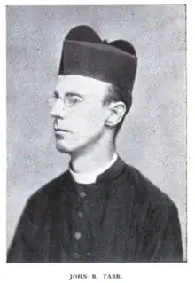 Tabb was ordained as a priest in 1884, after which he retained his academic position. Plagued by eye problems his whole life, he continued to teach though he lost his sight completely about a year before his death.[4] He died at Saint Charles College on November 19, 1909.[5]