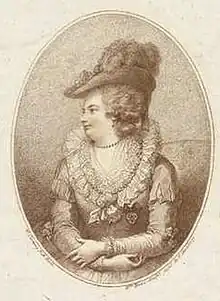 Martha Baker met in Paris Henry Swinburne, of an old recusant family, who was taking a version of the Grand Tour. They were married in 1767, in Aix-la-Chapelle. They had a family of four sons and six daughters.[19] Martha shared after her father's death in 1779 in his West Indian property, but the Anglo-French War by then being fought in the Caribbean made it worthless. Henry Swinburne pursued legal action and used influence with Marie-Antoinette to try to redress the position. Martha at her death had a share in an estate on St Vincent.[20]