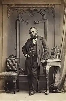John Balsir Chatterton was born at Portsmouth on 25 November 1804 the son of Mary née Callow and John Chatterton, a 'professor of music'. He was the third oldest of eight brothers and three sisters.[1] He came to London, and studied the harp under Bochsa and Labarre, succeeding the former as professor at the Royal Academy of Music. His first appearance in London took place at a concert given by Aspull in 1824. Chatterton married Eliza Davenport Latham on 1 August 1835 and they had five sons.[1] In 1842 he received the appointment of harpist to Queen Victoria. His last public performance at Windsor was on the occasion of the marriage of Princess Louise. He died after two days' illness in Portman Square, London on 9 April 1871 and was buried at Kensal Green. Chatterton wrote a considerable amount of harp music, mostly consisting of fantasias and arrangements. As a performer, his talents were overshadowed by those of his younger brother, Frederick Chatterton.