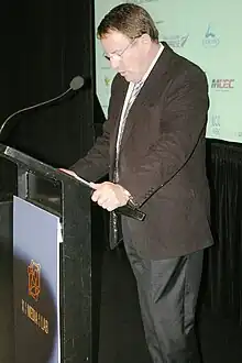 In between his tenures in Parliament, he served as Mayor of Auckland City for two terms, from 2001 to 2004 and from 2007 to 2010.[5] When seven former smaller councils were combined into one to run the Auckland 'supercity' in 2010, Banks unsuccessfully ran for mayor again.[6] The electoral return that he filed after that campaign, detailing donations received and campaign expenses, was the subject of Banks' conviction and eventual acquittal.[3][7] After new evidence came to light, it was decided in May 2015 that there would be no retrial.