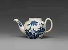 No high quality porcelain was being produced in America at the time, only basic stoneware. Luxury porcelains with underglaze blue decoration had to be exported to wealthy colonists in America from Britain. However suitable kaolin deposits had been discovered in the 1730s in the Carolinas, and some clay was even being shipped to England from Charleston.[1] Bartlam first began his pottery enterprise in 1765 in Cain Hoy, employing African-Americans as apprentices in the business. Bartlam moved his business to Camden, South Carolina in 1772 where there were plentiful supplies of kaolin.[2] From there he exported Queen’s Ware “equal in quality and appearance and can be afforded as cheap, as any imported from England.” [3] His products were regarded as a threat by Josiah Wedgewood[1]