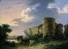 John Berney Crome worked in oils, watercolours and pencil, painting coastal and rural scenes, both at home and abroad. He made frequent visits to the continent, and the subjects of some of his pictures were taken from places in France, Holland, Belgium, and Italy.[2] Crome's paintings can bear a strong resemblance to those of his father, and also of fellow Norwich School artist George Vincent, and their works have at times been confused with each others.[3]