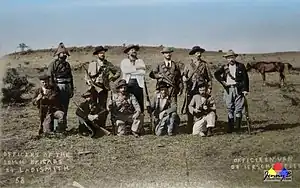 After his birth in 1856, Blake's family soon moved to Denton County, Texas. There he grew up cattle ranching and learned to ride horses.[2] His father sent him to the University of Arkansas at Fayetteville in 1871.[2] Soon after graduating, he received an appointment to West Point in 1876.[2] Upon graduating from West Point in June 1880, Blake began his military career, assigned as a 2nd Lieutenant to the 6th U.S. Cavalry stationed in Arizona. He served under General Willcox, General Crook, and General Miles during the Apache Wars.[3] Resigning from the military in 1889, Blake moved to Grand Rapids, Michigan to become a businessman, as his wife and family wanted him to settle down. After about five years he soon found out that "'the tricks of the trade', were too deep for me"[3] and giving into his desire for adventure, headed to South Africa as a gold prospector.