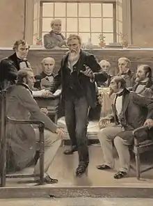 John Brown's last speech, so called by his first biographer, James Redpath, was delivered on November 2, 1859. John Brown was being sentenced in a courtroom packed with whites in Charles Town, Virginia, after his conviction for murder, treason against the Commonwealth of Virginia, and inciting a slave insurrection.[2]: 340 According to Ralph Waldo Emerson, the speech's only equal in American oratory is the Gettysburg Address.[3][4][5]