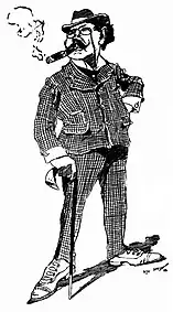 During 1897 Brunton's scenic paintings featured in Holt's touring productions such as The Cotton King, The Union Jack and The Prodigal Daughter.[58][59] Bland Holt productions in 1898 which incorporated Brunton's scenic designs included A Life of Pleasure, Straight From the Heart and Sporting Life.[60] Holt's production of Woman and Wine at Melbourne's Theatre Royal in April 1899 featured "Wonder-Compelling Tableaux" by John Brunton, the scenes consisting of "a French Racecourse", "The Boulevard Cafe", "The Japanese Ball", "The Paris Flower Market", "The Blind Man's Vision" and "The Trial at Le Palais de Justice".[61]
