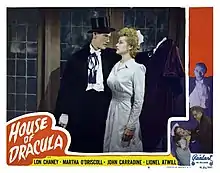 John Carradine (/ˈkærədiːn/ KARR-ə-deen; born Richmond Reed Carradine; February 5, 1906 – November 27, 1988) was an American actor, considered one of the greatest character actors in American cinema.[1][2] He was a member of Cecil B. DeMille's stock company and later John Ford's company, known for his roles in horror films, Westerns, and Shakespearean theater, most notably portraying Count Dracula in House of Frankenstein (1944), House of Dracula (1945), Billy the Kid Versus Dracula (1966), and Nocturna: Granddaughter of Dracula (1979). Among his other notable roles was “Preacher Casy” in John Ford’s The Grapes Of Wrath. In later decades of his career, he starred mostly in low-budget B-movies. In total, he holds 351 film and television credits, making him one of the most prolific English-speaking film and television actors of all time.