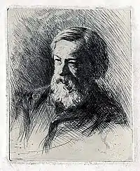 He resigned from the museum in 1869; becoming an advisor to private collectors, such as Sir Francis Cook. His own collection included the usual paintings, drawings, and sketches, but also contained Greek gems, Renaissance jewellery, Oriental porcelain, French furniture, Spanish and Italian embroideries, and ancient Coptic fabrics. In terms of his own work, he was most admired for his etchings and drypoints, which may be seen at the Ashmolean Museum, Oxford.[2]