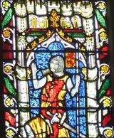 The fourteenth-century stained glass window thought to represent Charleton, now in St Mary's church, Shrewsbury.