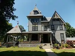 John Christian and Bertha Landrock Reichert House, also known as the Wineert-Gelm-Victorian House, is a historic residence located in Tipton, Iowa, United States. J.C. Reichert was a native of Bavaria who immigrated to Ohio in 1837 and moved to Tipton in 1855. He and his brother, John Henry, were carpenters. They became contractors and built numerous buildings in the area. They expanded their business by adding a lumberyard, before they opened a hardware and farm implement business. Reichert also served as a director of the Cedar County State Bank. He hired New York City architect Samuel B. Reed to design his home. It is a rare example of the Stick style in Iowa.[2]