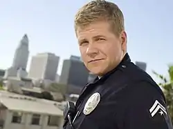 ![]() Michael Cudlitz as Officer John Cooper, shown wearing the rank patch of a Senior Lead Officer. | |
