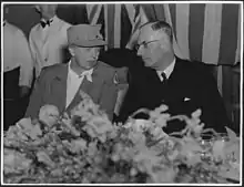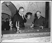 Mackenzie King, the Prime Minister of Canada, hosting Prime Minister John Curtin of Australia and his wife Elsie at the Peace Tower in Ottawa.