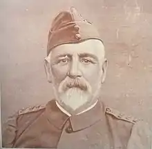 At the start of the Boer War (1899–1902) Dartnell was placed on the Staff of Major-General Sir William Penn Symons KCB (1843–1899) at Dundee. The men of the Natal Police at Dundee fought in the Battle of Talana Hill on 20 October 1899. The British forces including 90 men of the Natal Police under the command of Dartnell then retired to Ladysmith where they became besieged during the Siege of Ladysmith. Dartnell as Colonel-in-Chief of the Colonial Forces was placed on General George White's staff at Ladysmith. The men of the Natal Police came under fire at Lombard's Kop on 30 October 1899. At Ladysmith the Natal Police had one man killed and three wounded while a further three died of disease.[4]