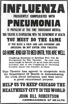 A public health notice that was displayed in a Chicago theater amid the flu pandemic