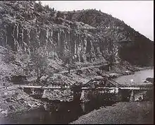 Previous John Dunn Bridge, photograph taken about 1900,[4] prior to construction of the current John Dunn Bridge in 1908