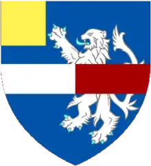 Out of a ducal coronet Or a demi lion Azure charged on the shoulder with a bezant.