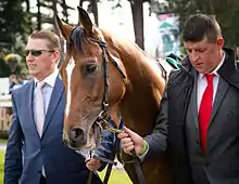 John F Kennedy (7 February 2012[1] - 27 January 2022[4]) was an Irish-bred Thoroughbred racehorse and a stallion stood in Argentina.[6][3] He was beaten as an odds on favourite on his debut but won his next two races, the latter being the Juvenile Turf Stakes that turned out to be the last win in his racing career. At the end of 2014 he had been one of the antepost favourites for the 2015 Epsom Derby, though he did not run in it after all.