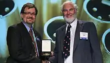 ![]() Bob Moses (left) giving McKnight (right) the Audio Engineering Society Distinguished Service Medal Award for 2008 | |