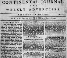 John Gill (1732–1785) was a printer in Boston, Massachusetts, in the 18th century.[1] With Benjamin Edes, he issued the Boston Gazette newspaper.[2] He later published the Continental Journal between 1776 and 1785.