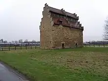 Dovecote at Willington Manor; it was constructed by Sir John Gostwick to house 1500 pigeons.[1] Materials from Newnham Priory (dissolved 1535) may have been used.[2]