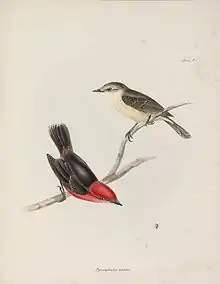 John Gould FRS (/ɡuːld/; 14 September 1804 – 3 February 1881[1]) was an English ornithologist who published monographs on birds, illustrated by plates produced by his wife, Elizabeth Gould, and several other artists, including Edward Lear, Henry Constantine Richter, Joseph Wolf and William Matthew Hart. He has been considered the father of bird study in Australia and the Gould League in Australia is named after him. His identification of the birds now nicknamed "Darwin's finches" played a role in the inception of Darwin's theory of evolution by natural selection. Gould's work is referenced in Charles Darwin's book, On the Origin of Species.
