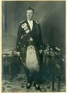 John Grant was the sixth child and fourth son of George Grant and Eliza (Elisabeth) Roy Grant, who resided in "The Bauds" on a hillside outside of the settlement of Kellas, near Dallas and Elgin, Scotland.[7] At 17 years of age John left the farm for Elgin in order to begin a career in law. Within six months he obtained a position as a law clerk with Messrs. Stewart and McIsaac, Solicitors. Needing a hobby to occupy his leisure hours, he took up bagpiping, walking eleven miles one way twice a week to Gordon Castle in order to study with renowned Pipe-Major Ronald MacKenzie. By the summer of 1898, after only two years of study, Grant had become accomplished enough on the bagpipes to win the gold medal in a competition that fielded thirty-three entrants. In late August, Ronald MacKenzie recommended Grant to William Stirling-Home-Drummond-Moray, Laird of Abercairny (Crieff), who was seeking a full-time family piper for the Abercairny Estate. Grant accepted the position, serving in the post from October 1898 until May 1902.