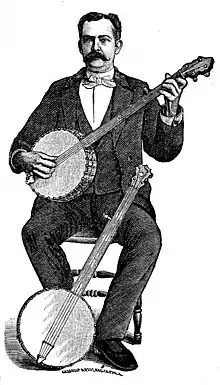 As early as 1875, he performed with James E. Adams in a minstrel show known as "Adams and Lee."[2][9] The two became headliners in other acts, including Bryant's Minstrels by 1875 and Haverly’s minstrels by 1878.[9][10] While performing with Haverly’s in the United States, he "directed a team of 14 banjoists."[11] In 1879, he joined the J. H. Haverly's Minstrels group that performed in England in 1880.[2] He and Adams stayed with Haverly's into 1883 after returning to the United States.