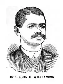 John H. Williamson (c. 1846–1911) was an African American politician and newspaper publisher in North Carolina. Born in Covington, Georgia, Williamson grew up in Louisburg, North Carolina.[1] He served six terms in the North Carolina General Assembly from 1866 to 1888.[2] In addition to his career as a state politician, Williamson served as justice of the peace, a member of the Franklin County Board of Education. Between 1881 and 1884 Williamson founded two newspapers: The Banner and The North Carolina Gazette. The former was the newspaper of the North Carolina Industrial Association, of which Williamson served as secretary.[3]